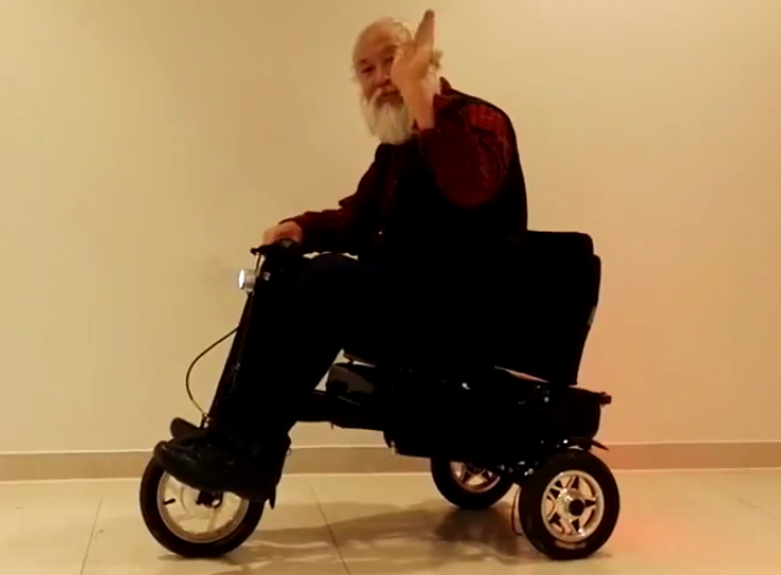eFOLDi can be easily folded to a chair to rest on and to a suitcase for easy storage! It is the brainchild of Jianmin Wang, who worked as engineer with the Chinese Acrobatic Circus for over over 20 years. As the award winning engineer behind some of the most jaw dropping effects and stunts in the world, it was Jianmin’s job to defy the laws of physics on a daily basis and as you might expect his newest creation eFOLDi is rather special. The scooter, which weighs just 17 kilograms and yet can carry a full size adult for over 30 kilometers on a single charge is set to revolutionise the way we travel. Jianmin came up with idea after he broke his leg. The eccentric Chinese maker, famed for his outlandish inventions, decided he wasn’t going to make a fuss and simply got in his workshop and solved the problem by coming up with eFOLDi.