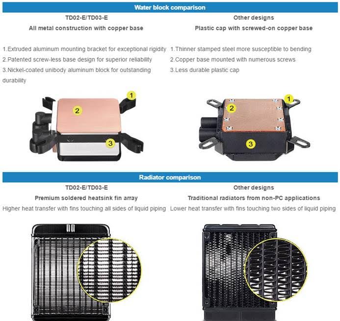 Singapore (5th August, 2016) — Silverstone today announced the TD03-E All-in-one Liquid Cooler. It’s unique alloy water-block is constructed with copper base and aluminium body for better durability compared to plastic-built competitions. The block also has a patented design that eliminates screws in its construction to provide excellent cooling performance and integration of mounting bracket for easy installation.