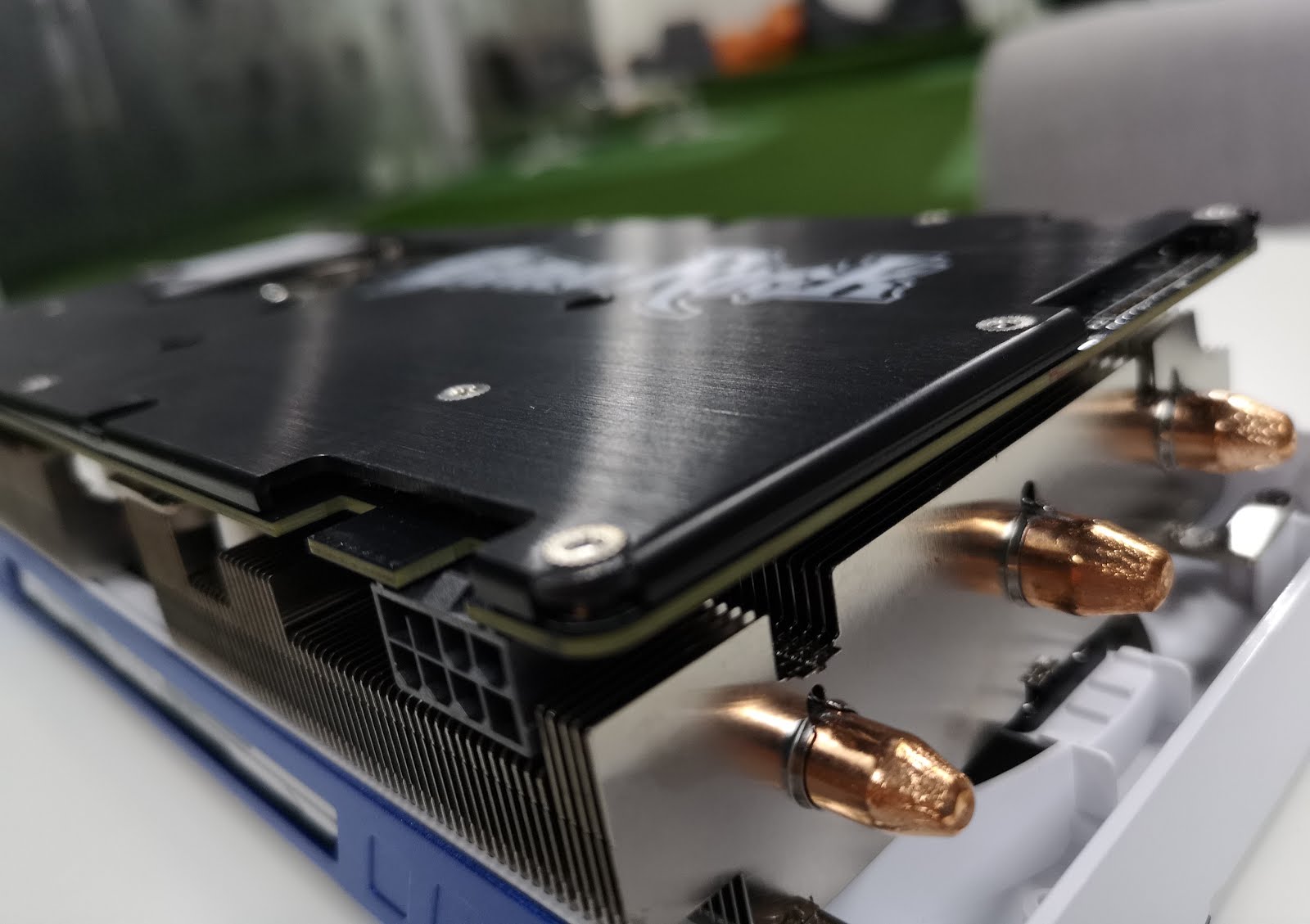 Here is a recap in case you missed earlier reviews of Palit’s GameRock GTX 1070. The graphics card is covered with a layer of aluminum finish, giving it a refined and textured look across its body. It also sports a glittery blue and white color pattern, which stands out from the common darker colored schemes.