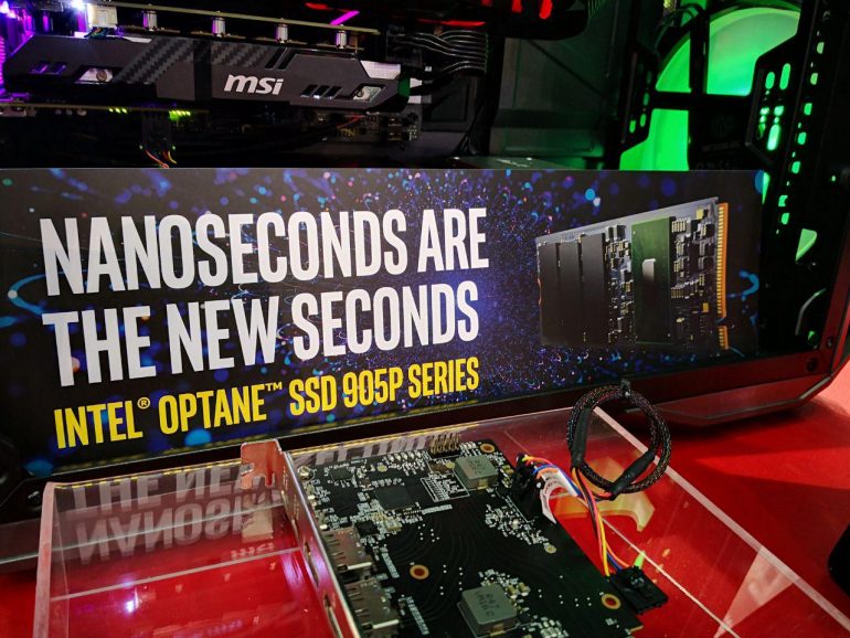 So… What happens when you put 4 of these Optane SSD 905P in RAID 0 on a single computer? At MSI’s booth at Nangang Exhibition Hall, we got a feel of the raw performance of such a solution.