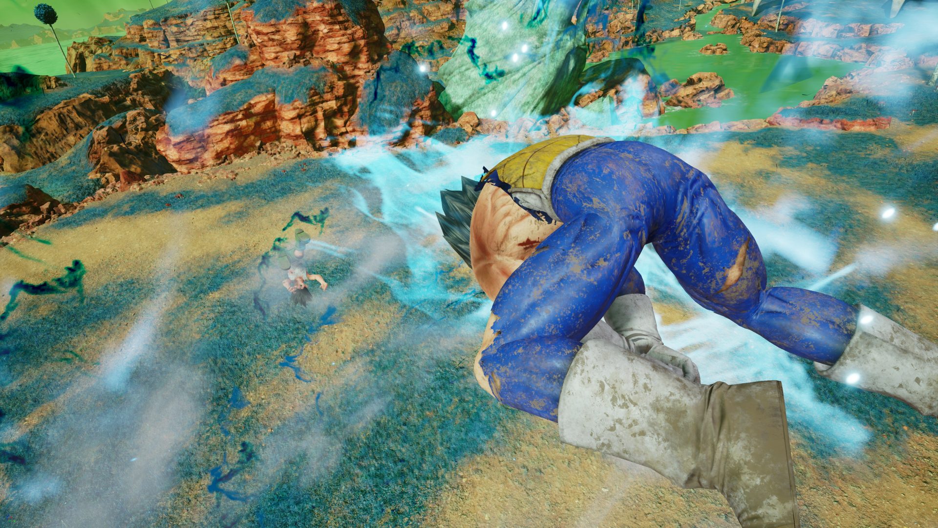 Also revealed today is the Namek stage. From the Dragon Ball Z universe, Namek is the planet where the infamous battle against Frieza took place. Namek has three suns, so is in a state of permanent daylight. In JUMP FORCE, the planet Namek also features the mysterious appearance of a certain green statue…