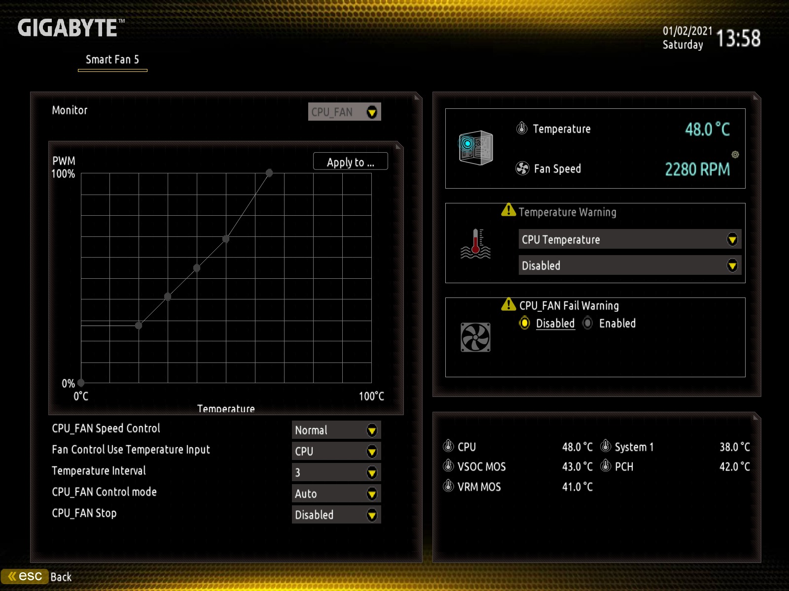 If you are a more advanced user, you can be assured that all the other settings are still available in the advanced menu. Even the Smart Fan 5 utility is still available for you to customize and define your fan curve settings.