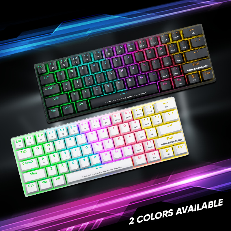 The Armaggeddon MKA-61C does not offer RGB lighting. In other words, each key will feature one single color permanently. You’ll still be able to enjoy the keyboard’s EFX light effects, though.