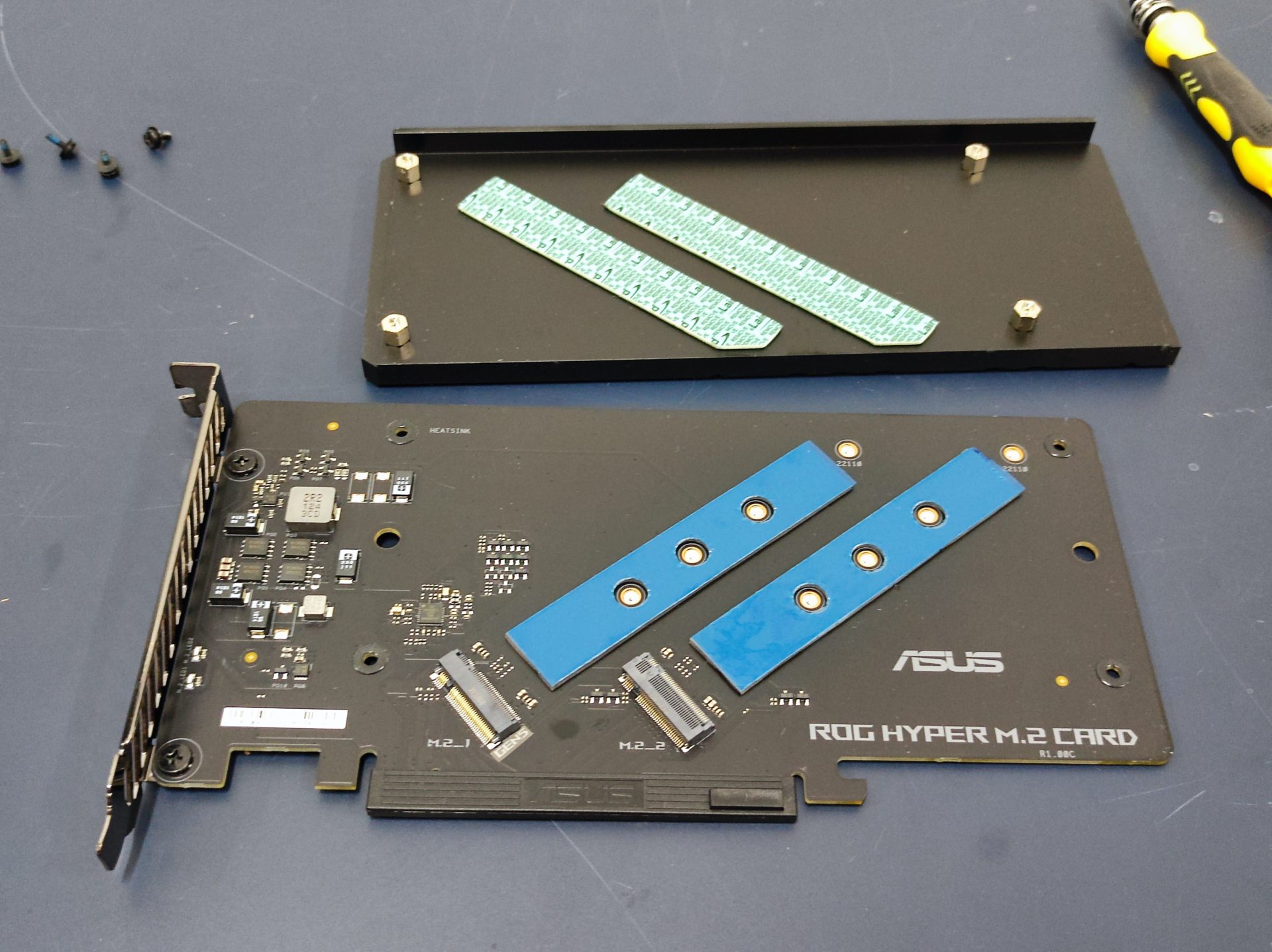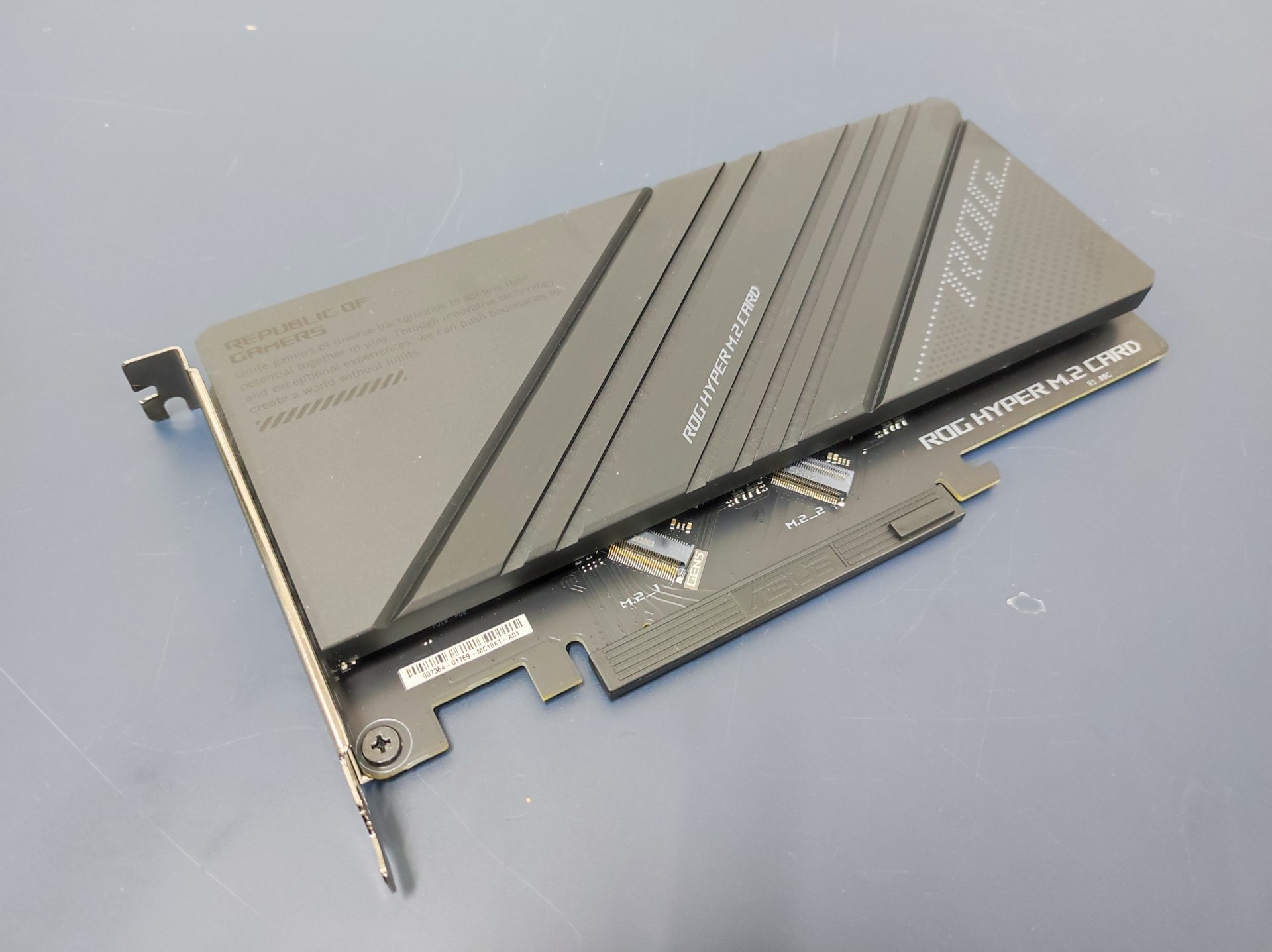 Your purchase of the ASUS ROG Maximus Z690 Hero also comes bundled with a ROG Hyper M.2 add-in card (AIC). This AIC features two more M.2 slots for even more M.2 SSDs on your system. An interest thing to note is that one of the M.2 (left) slot is compatible with PCIe 5.0 standard. This allows for twice the speed of a PCIe 4.0 slot.