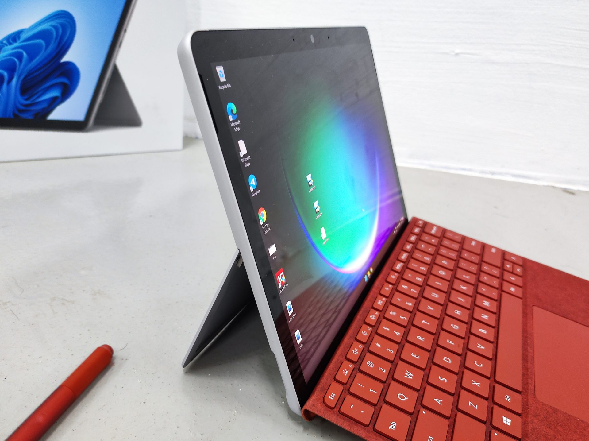 Our review unit also came with a red Type Cover and a red Surface Pen. Both peripherals snap right onto the base unit and we were able to get to work immediately without much efforts.