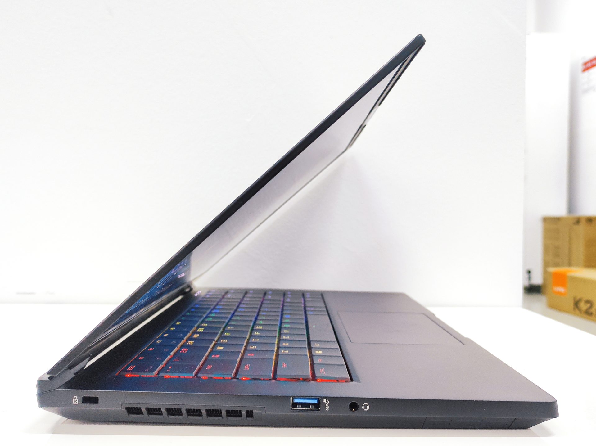 The Dreamcore Fusion 15 comes with a rather minimal design. Unlike major brands that like to include various motifs and stylings in order to show off their unique brand, the Fusion 15 has kept things simple. Generally, its design isn’t too “loud”, and could be appreciated by those who want to use it in a professional setting. Regardless, there are still some elements of design that tells us that the Fusion 15 is meant for gamers as well. Specifically, it has a RGB LED backlit keyboard, and also an accented RGB LED lighting effect built in to the front of the device. Thankfully, all these lighting effects can be switched off or customized depending on your preference.
