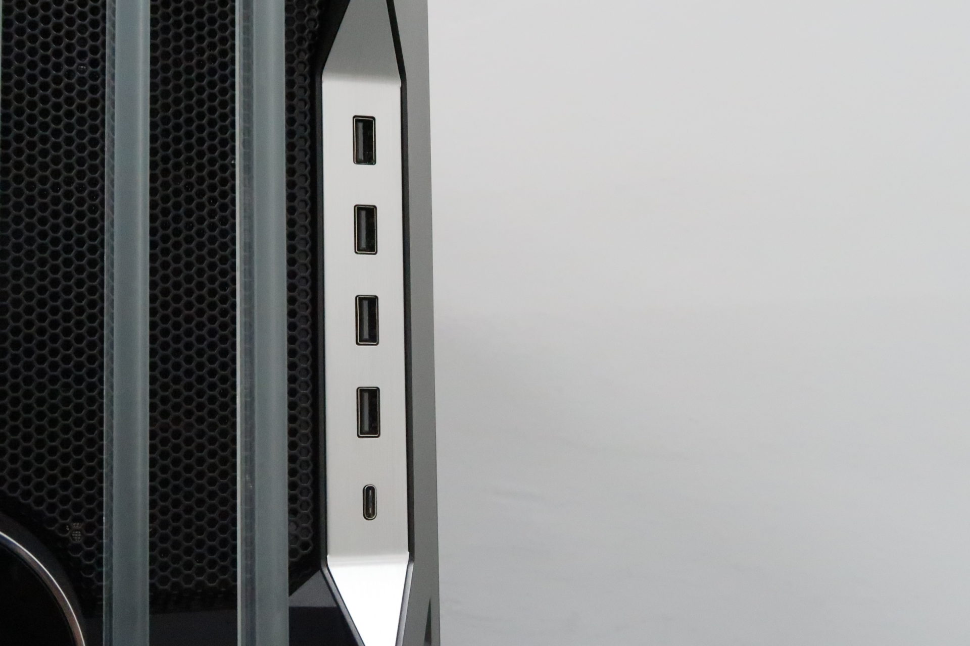 Of course, as a premium case, the HAF 700 EVO also features a comprehensive suite of front panel access ports. There are 4 x USB 3.0 ports, 1 x USB 3.0 Type-C port and also the standard 3.5mm headphones and microphone jacks. You’d need to make sure that your motherboard has got the features to support all these external ports, as there is a need for 2 x USB 3.0 19-pin headers and 1 x USB Type-E connector. (in our case, we could only use 2 x USB 3.0 ports instead of 4, as our motherboard doesn’t have enough 19-pin headers.