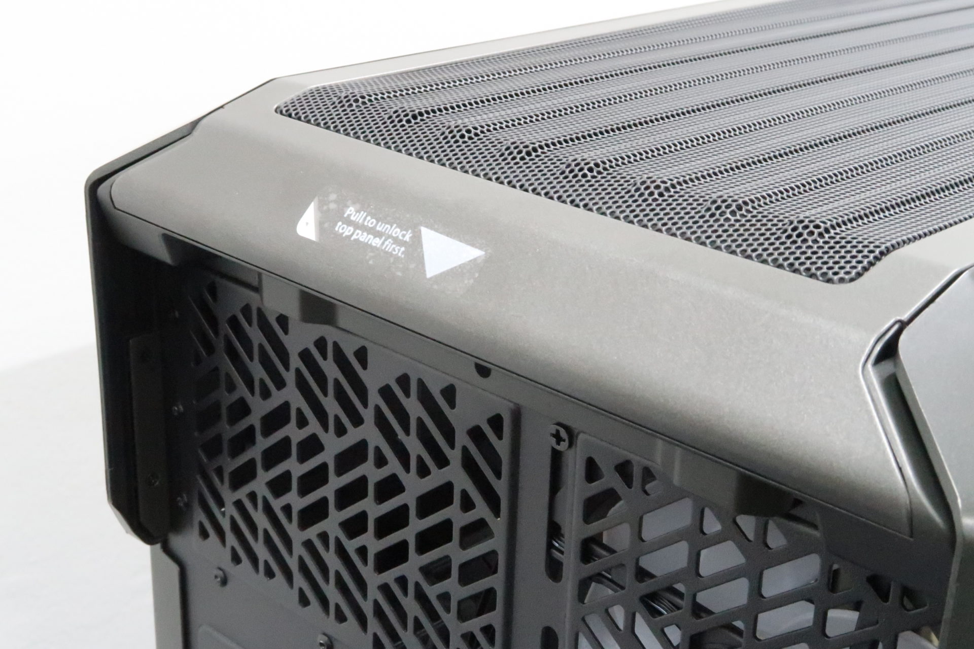To remove the side panels, the top panel need to be removed first. There is even a small little sticker which instructs you on how to gain access to the insides of the case. Without any effort or tools, I simply had to pull the top panel towards me, and then just remove the side panels. Although each of these panels are quite heavy, making them easily removable makes it extremely convenient for any system builders.