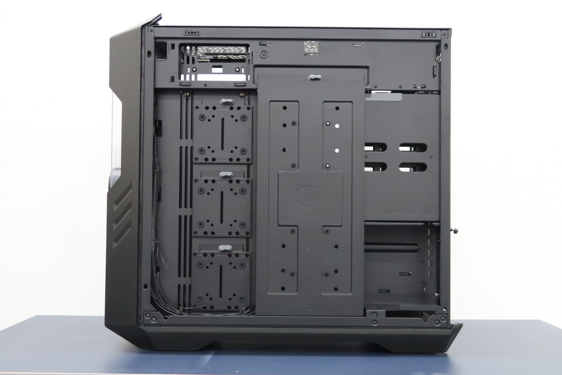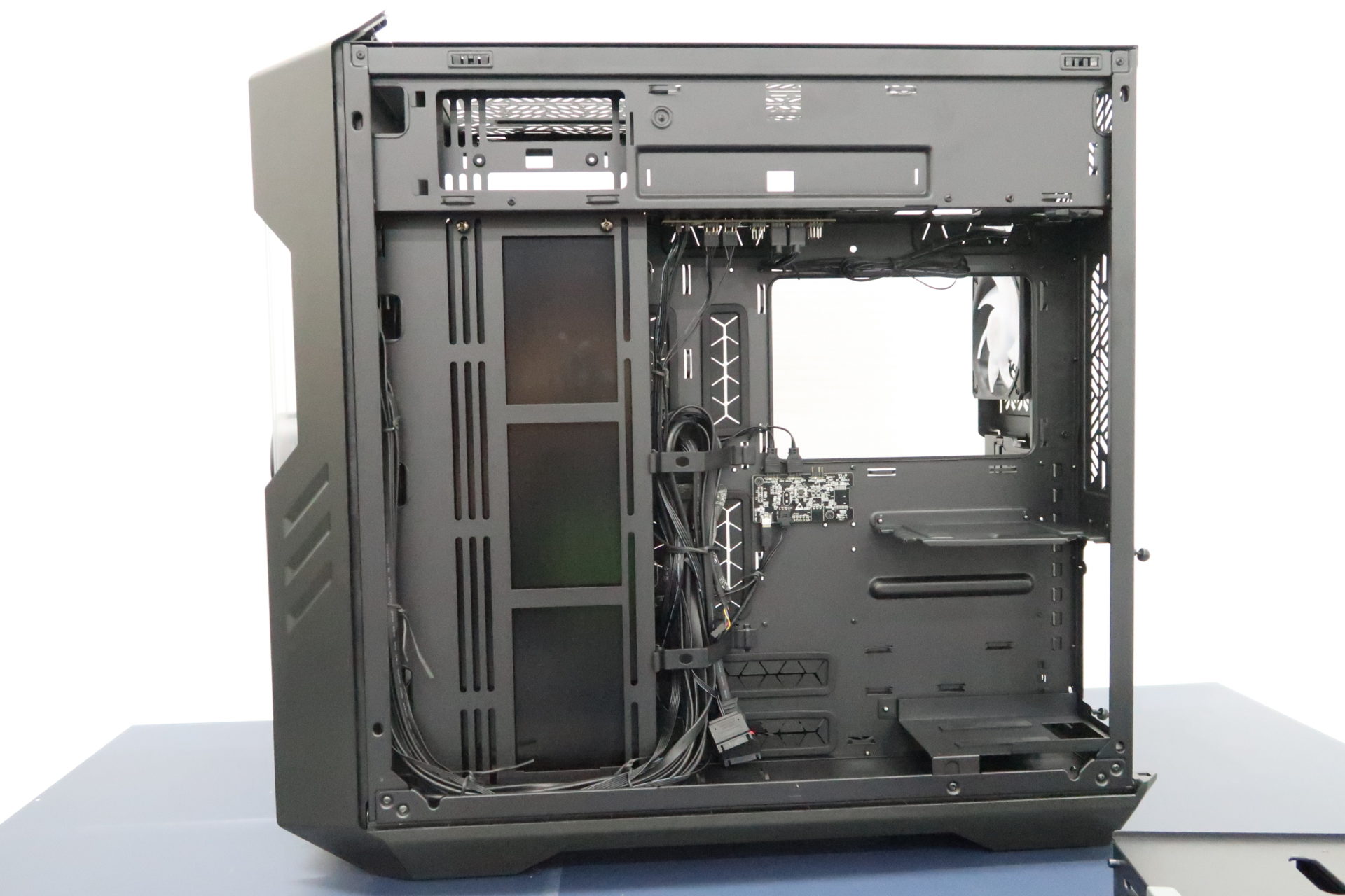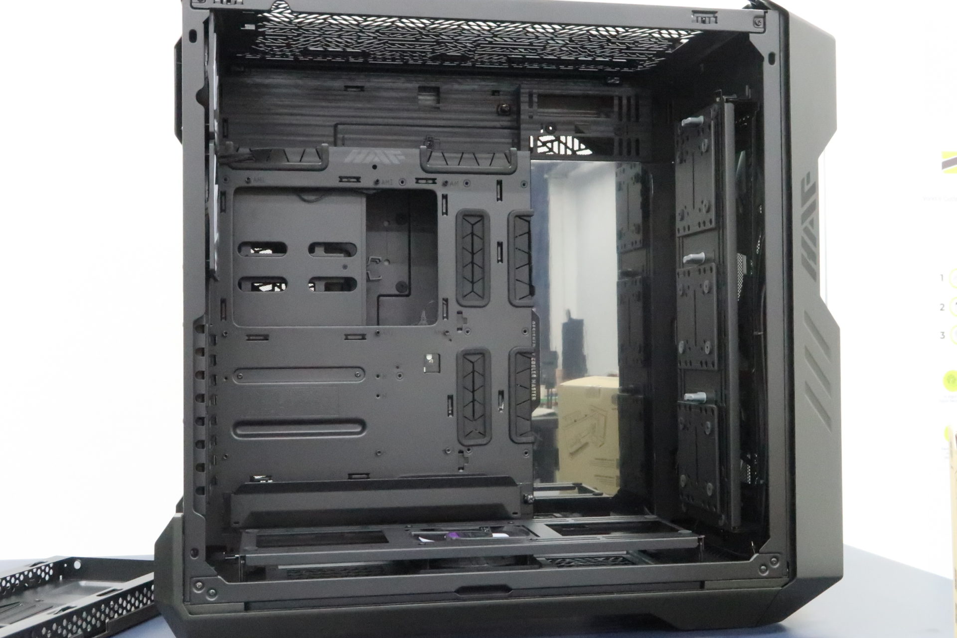 As mentioned earlier, the HAF 700 EVO is designed so that you will have ample space to work with. There is also considerable depth to the case, supporting even the tallest CPU air coolers you could want to install in the case. If you wanted to, you could have even installed a 420mm or 2 x 360mm radiators at the top side of the case. This makes the HAF 700 EVO extremely suitable to install a water cooler setup. In fact, to the right side of the motherboard tray, you can spot a reflective surface, which is known as the infinity mirror. A water cooling setup’s reservoir, or a 360mm radiator placed there would really create an interesting style to the case.
