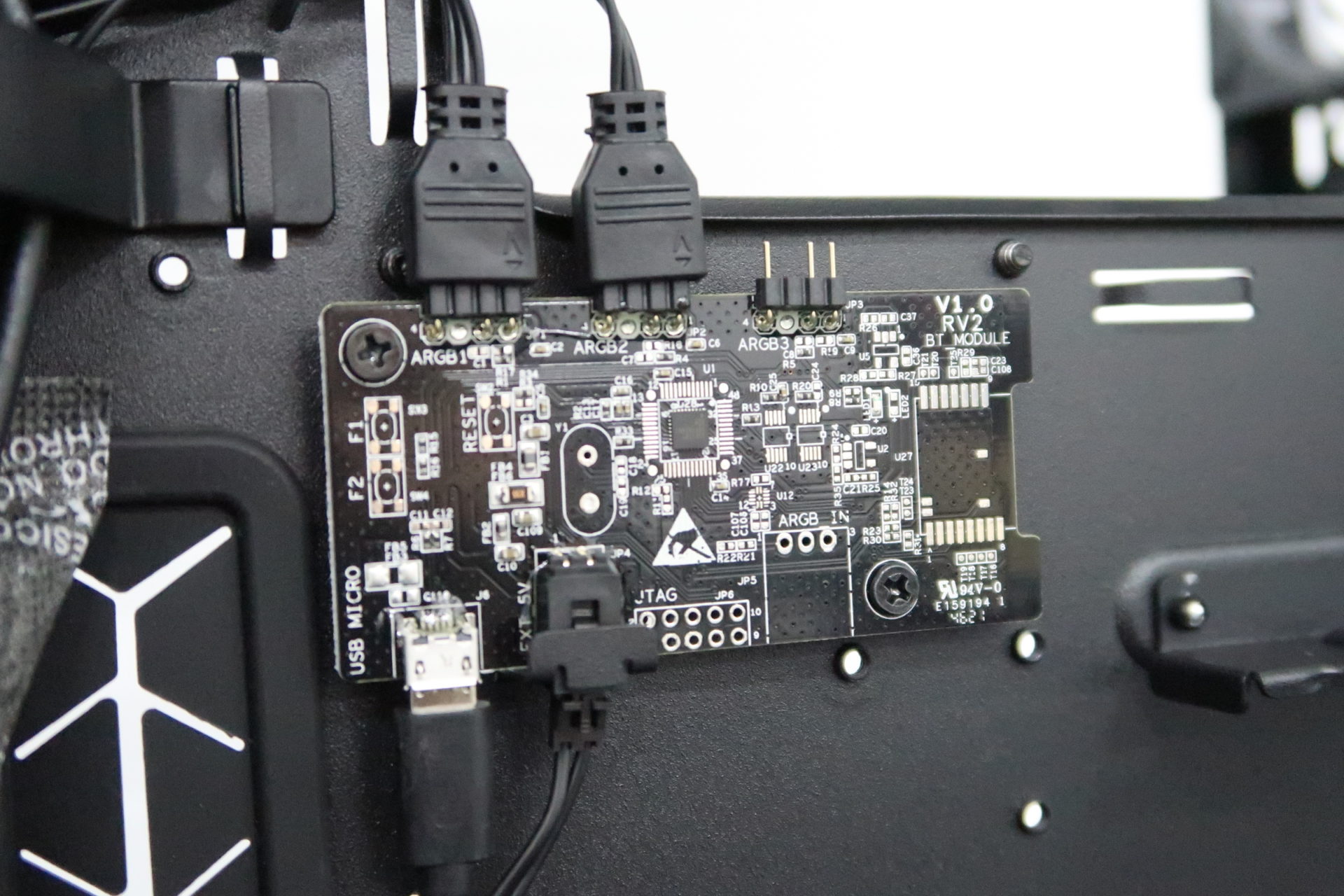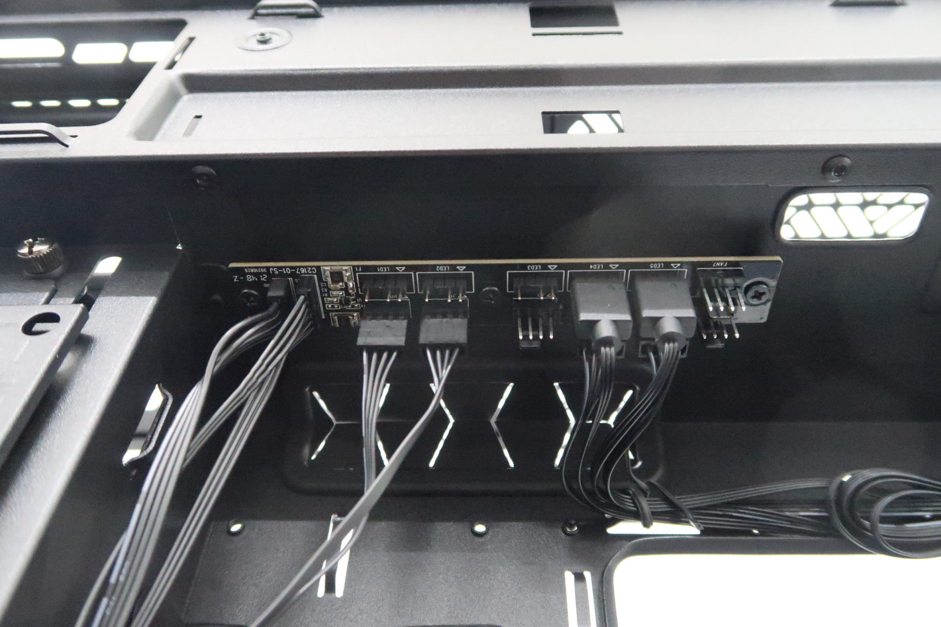 Mounted on the case are two controller boards. One of which is a RGB controller, which controls the lighting effects on the front of the case. The other is a ARGB fan controller. Do take note that the RGB controller is connected to the system via a USB 2.0 header to the motherboard. (Unfortunately, our motherboard did not have a USB 2.0 header for us to connect to the controller and the front LED panel for advanced control).