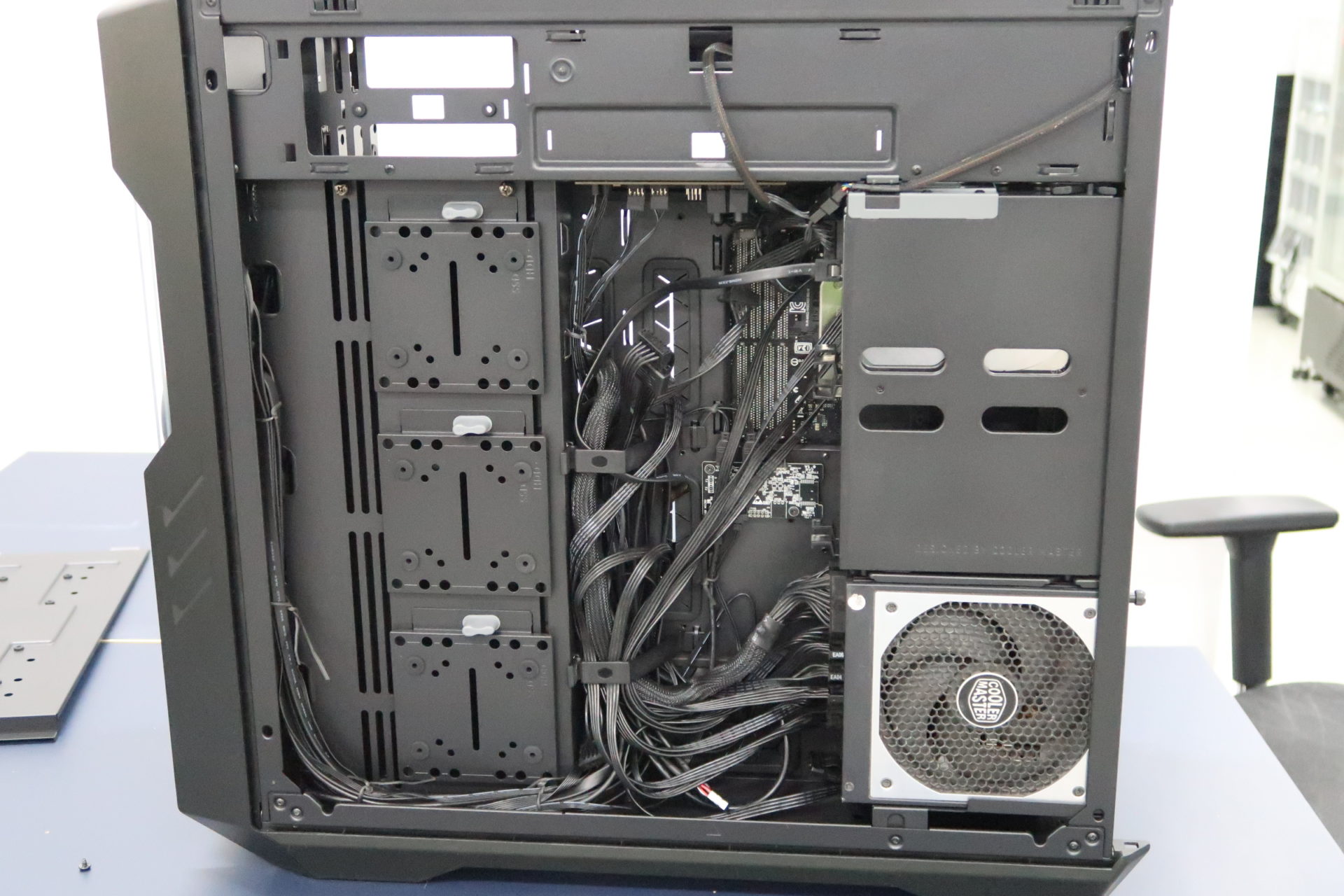 On the right side of the case, there were even more features which were never seen before. Since most of the cables will be routed at this side of the case, Cooler Master has specially designed shrouds and covers to hide the cables. For lazy people like me, I’d have to be less concerned with cable management, as I can just shove all the cables behind the cables and call it a day.