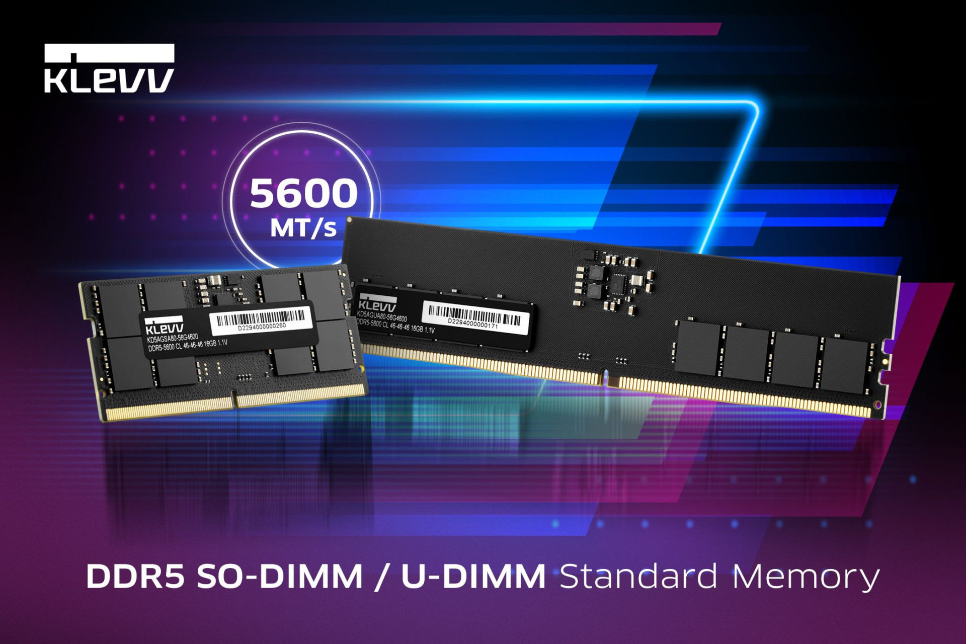 To cater the growing demand for high-speed computing with a highly versatile product selection, KLEVV introduces a brand-new 5600MT/s version to its DDR5 standard desktop and laptop memory lineup. Fully compliant with JEDEC standards, the new 5600MT/s DDR5 memory is the latest addition to KLEVV’s DDR5 U-DIMM and SO-DIMM lineup with the pre-existing 4800 MT/s memory.