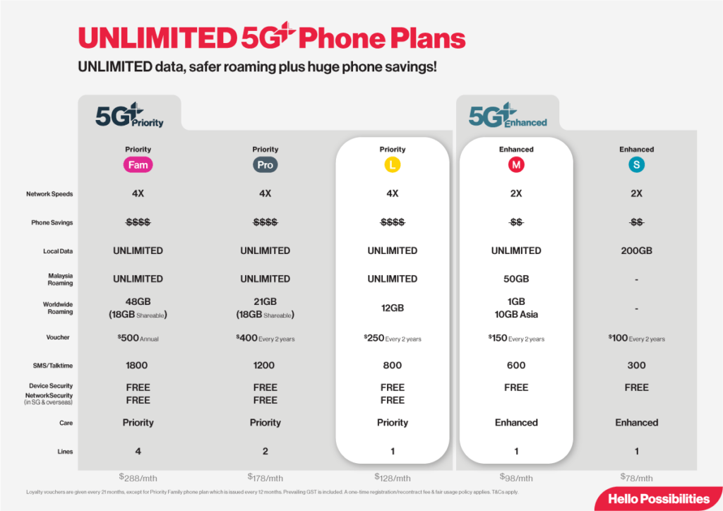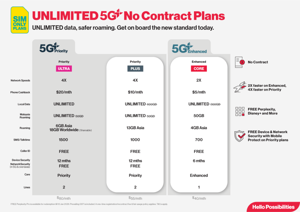 Singtel 5G+ Priority and Enhanced Plans at a glance